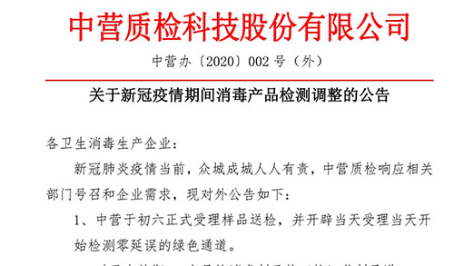 關于新冠疫情期間消毒產品檢測調整的公告